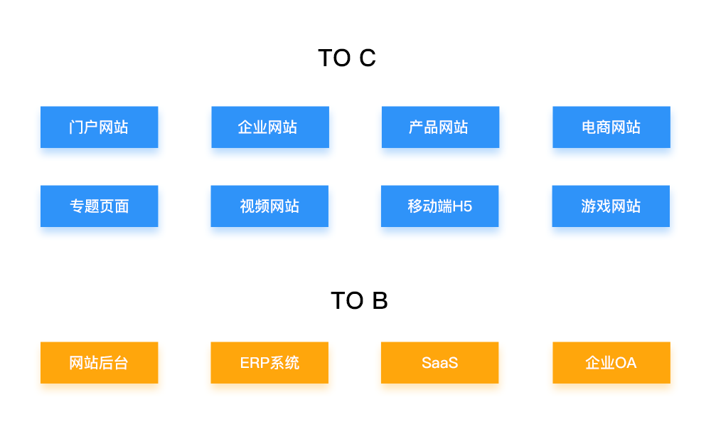 网站的分类按对象来划分可以分为To C端和To B端两种。To C端就是面向用户和消费者,例如门户网站、企业网站、产品网站、电商网站、游戏网站、专题页面、视频网站、移动端H5等,均是面向用户和消费者的产品。由于是面向用户和消费者,所以设计上一定要可以吸引人,并且以用户为中心考虑体验设计。而To B端作为一个需求量很大的类别,其实往往被设计师所忽视。什么是To B端项目呢?比如电商网站供货商的后台、Dashboard、企业级OA、网站统计后台等这些面向商家和专业人士的网站就是To B类网站项目了。这些项目的要求和To C端网站的要求大相径庭:To B类项目最重要的是效率而不是体验,因为说白了我们在设计使用者工作的工具,我们在设计时必须首先要保证操作者可以高效地完成他们所需要完成的工作。那么让我们来了解一下网站的不同门类吧。