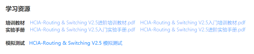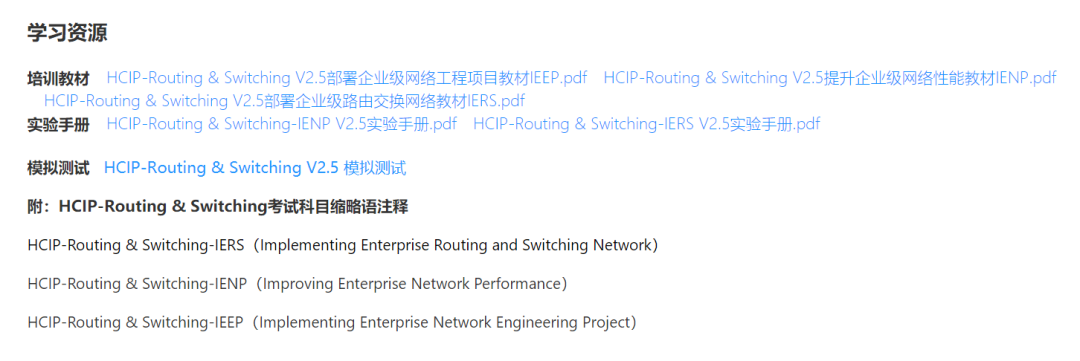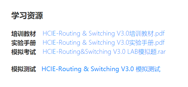 官方认证配套书籍是《 HCNA 网络技术学习指南》和《 HCNP 路由交换学习指南》,讲的是路由器和交换机的常用网络技术。每章内容后面都有练习题,有些面试题也来自于此。